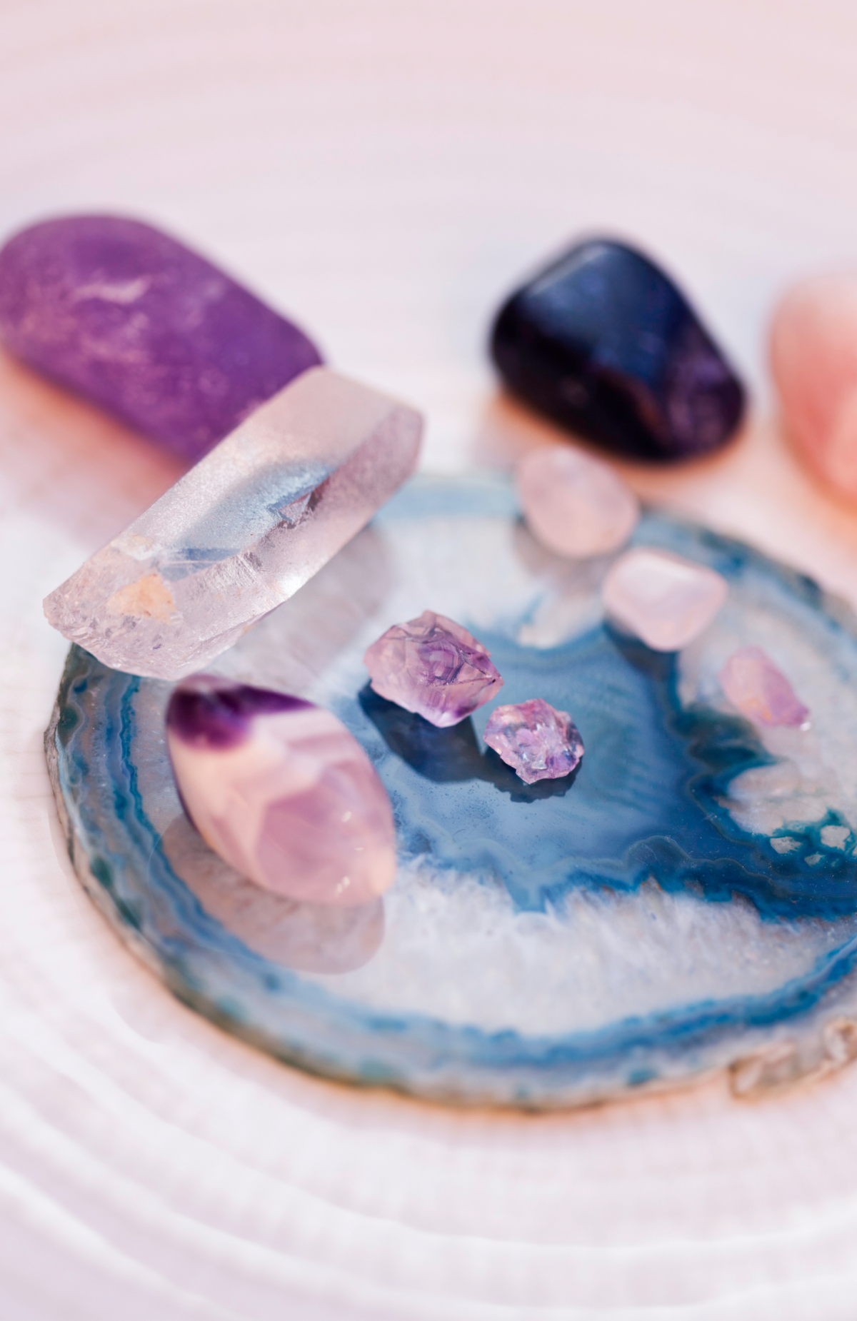 You may like to put together a little kit of crystals containing Amethyst, Rose quartz, clear quartz and a few others you feel drawn too. Smokey quartz and black tourmaline are excellent for grounding and feeling balance .Blue lace agate is calming and soothing. Have fun experimenting with the different ones to see which you find works best with you. You may find a new passion for collecting them though!Be warned !